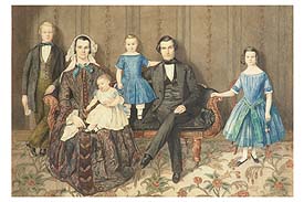 | Orson Pratt with his first family Frederick H. Piercy, about 1850, tinted engraving. Orson Pratt Jr., Sarah Marinda Bates Pratt, Marinthia Altheria Pratt, Laron Pratt, Orson Pratt, Celestia Louisa Pratt. Replaces B&W reprint from DUP. Other versions on disc: B&W DUP version, Color slide from LDS Museum (poor color). |