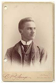 Alvin A. Beesley as missionary, 1895. Cabinet card. Also included on disc: B&w version, more closely framed. From Carolyn Maxwell. |